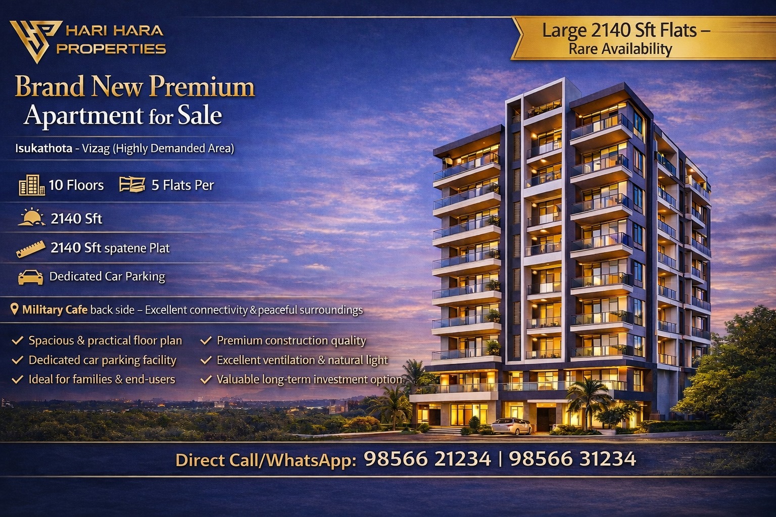 Hari Hara Properties helps you discover verified homes, flats, and plots in Vizag with confidence. Trusted guidance, transparent deals, and a smooth property experience — every time.